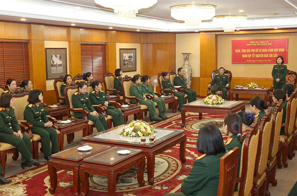 Tại buổi gặp mặt, Đại tá Phùng Thị Phú cùng Đoàn công tác đã trao 22 suất quà Tết, mỗi suất quà trị giá 1 triệu đồng tặng các hội viên có hoàn cảnh khó khăn trong Học viện. Đồng chí Trưởng Ban Phụ nữ Quân đội cho biết: “Trong khuôn khổ của chương trình thăm và tặng quà Tết nhân dịp Tết Tân Sửu, Ban Phụ nữ Quân đội đã dành 1.150 suất quà để tặng cho cán bộ, hội viên phụ nữ có hoàn cảnh khó khăn trong toàn quân. Tuy số lượng cũng như giá trị của những suất quà còn khiêm tốn nhưng chúng tôi nghĩ rằng trong đó đã chứa đựng những tình cảm trân trọng, yêu thương của Ban Phụ nữ Quân đội và cũng hy vọng góp phần mang đến một mùa xuân ấm áp hơn cho các gia đình hội viên có hoàn cảnh khó khăn của Học viện KTQS nói riêng, cũng như trong toàn quân nói chung”.