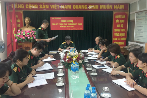 Đại diện Chỉ huy Ban, Đại tá Tạ Văn Hồng – Trưởng Ban Tài chính đã đọc Báo cáo tổng kết phong trào thi đua Quyết thắng năm học 2017 – 2018. Báo cáo nêu bật các kết quả đạt được và những tồn tại trong năm học 2017 – 2018, đồng thời đề ra những nhiệm vụ chủ yếu và phương hướng thực hiện nhiệm vụ năm học 2018 – 2019.