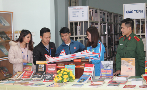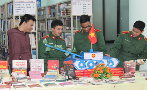 Với chủ đề “Tiếp bước truyền thống quân đội anh hùng”, xuyên suốt không gian trưng bày là các ấn phẩm viết về Đảng, Bác Hồ và các vấn đề về Quân đội nhân dân Việt Nam như: Lịch sử hình thành, nghệ thuật quân sự, các trận đánh hay, các tướng lĩnh trong quân đội nhân dân Việt Nam,… Bên cạnh những ấn phẩm bằng sách, tại đây còn trưng bày một số tờ báo, tạp chí gồm những bài viết về quân đội nhân dân anh hùng, về chiến thắng Tết Mậu Thân năm 1968… Kèm theo đó là những mô hình sách nghệ thuật được tái hiện lại từ những cuốn sách vô cùng khéo léo và đẹp mắt khiến cho không gian trưng bày thêm sinh động và cuốn hút người xem.