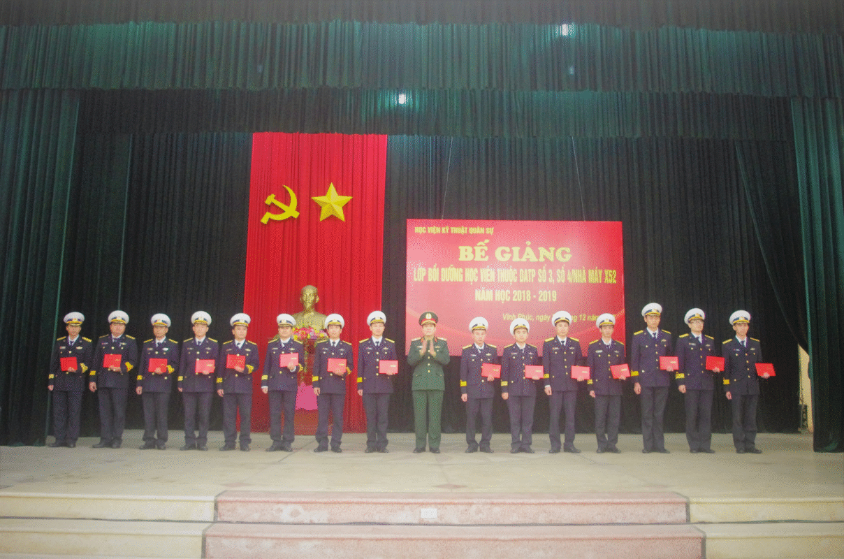 Sáng 21/12/2018, Phòng Đào tạo phối hợp với Trung tâm Huấn luyện 125 – Vĩnh Phúc, Hệ Quản lý học viên IV tổ chức Bế giảng Lớp Bồi dưỡng học viên thuộc DATP số 3, số 4/Nhà máy X52/Quân chủng Hải quân. Dự Lễ Bế giảng có Thiếu tướng Phạm Ngọc Thắng – Phó Chính ủy Học viện; Đại tá Nguyễn Ngọc Tuấn – Phó Chủ nhiệm Kỹ thuật Quân chủng Hải quân; Đại diện chỉ huy Phòng Đào tạo, Trung tâm Huấn luyện 125 – Vĩnh Phúc, Hệ Quản lý học viên IV, Khoa Ngoại ngữ và đông đủ học viên Lớp Bồi dưỡng.