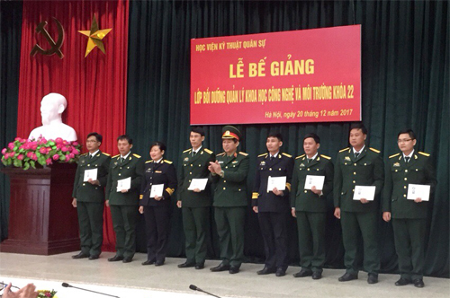 Thực hiện nhiệm vụ năm học 2017 – 2018, Học viện KTQS đã phối hợp với Cục Khoa học Quân sự tiếp tục tổ chức lớp bồi dưỡng sau đại học chuyên ngành Quản lý Khoa học Công nghệ và Môi trường (KHCN&MT) Khoá 22. Sau 4 tháng triển khai học tập, sáng 20/12, thừa ủy quyền của Giám đốc Học viện, Phòng Sau đại học đã tổ chức bế giảng Lớp bồi dưỡng Quản lý KHCN&MT cho 23 đồng chí học viên. Đây là những cán bộ đang công tác tại Phòng Khoa học Quân sự của các quân khu, quân đoàn, quân binh chủng, học viện, nhà trường trong toàn quân.