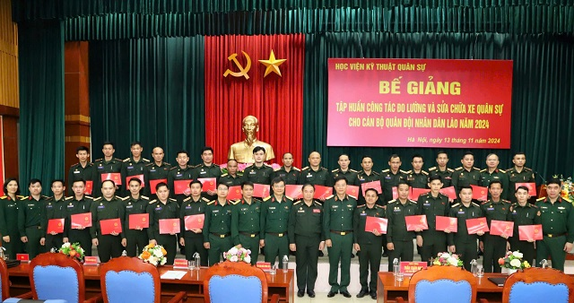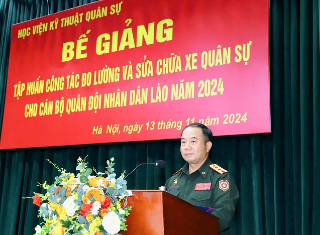 Sáng 13/11/2024, Học viện KTQS tổ chức Bế giảng tập huấn Công tác đo lường và Sửa chữa xe quân sự cho cán bộ Quân đội nhân dân Lào năm 2024. Thiếu tướng Trần Xuân Nam – Phó Giám đốc Học viện chủ trì buổi Bế giảng.
