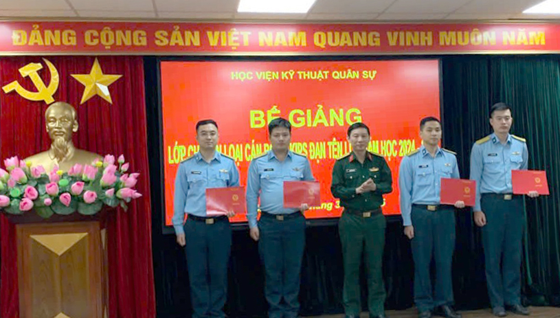 Thực hiện Quyết định số 1360/QĐ-HV ngày 25/3/2025 của Học viện, chiều 26/3/2025, Học viện KTQS đã tổ chức Bế giảng và trao chứng chỉ hoàn thành khóa học cho 04 học viên lớp Chuyển loại cán bộ xe KIPS đạn tên lửa năm học 2024 – 2025. Đến dự và chủ trì buổi bế giảng có Đại tá PGS.TS Ngô Thành Long – Trưởng phòng Đào tạo. Dự buổi bế giảng còn có các đồng chí đại diện Ban chỉ huy Viện Tên lửa và Kỹ thuật điều khiển, Bộ môn Tên lửa/ Viện Tên lửa và Kỹ thuật điều khiển, Hệ Quản lý học viên đào tạo văn bằng 2, Ban Quản lý đào tạo/ Phòng Đào tạo và toàn thể học viên lớp học.