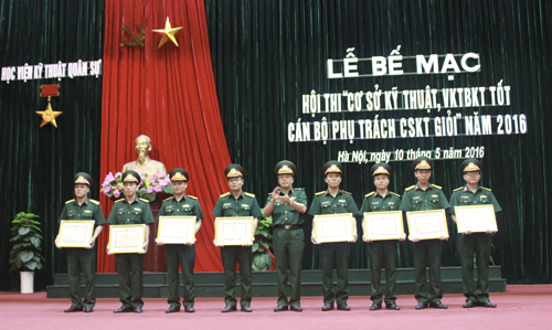 Sau hơn một tháng chuẩn bị và tổ chức, Hội thi “Cơ sở kỹ thuật, VKTBKT tốt, cán bộ phụ trách CSKT giỏi” năm 2016 đã thành công tốt đẹp. Ngày 10/5, Học viện đã tổ chức Lễ Bế mạc và trao giải cho các tập thể, cá nhân đạt giải. Tới dự Lễ Bế mạc có Thiếu tướng Nguyễn Công Định – Giám đốc Học viện, đại diện Cơ quan thường trực Ban chỉ đạo CVĐ50 Bộ Quốc phòng, các Cơ quan thuộc Bộ Tham mưu/Tổng cục Kỹ thuật, các thành viên Ban chỉ đạo CVĐ50 Học viện, đại diện chỉ huy các đầu mối trực thuộc Học viện, các bộ môn có cán bộ phụ trách CSKT và NVKT tham gia thi, thành viên trong Ban chấm thi, các đồng chí NVKT trong toàn Học viện và đại diện học viên các tiểu đoàn.