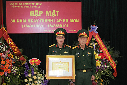 Tại buổi gặp mặt, Đại tá Lê Văn Tọa – Bí thư Đảng ủy Khoa CHTMKT đã chúc mừng và thừa ủy quyền Đảng ủy, Ban Giám đốc Học viện, trao tặng Bằng khen của Học viện cho Bộ môn BĐKT Xe vì “Đã có nhiều đóng góp vào quá trình xây dựng và phát triển Học viện”.