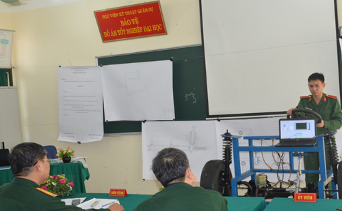 Tại buổi bảo vệ, Đại tá TS Nguyễn Văn Trà – Chủ nhiệm Bộ môn Ô tô quân sự, Trưởng tiểu ban, đã công bố Quyết định thành lập tiểu ban chấm bảo vệ đồ án tốt nghiệp cho học viên lớp Ô tô quân sự Khóa 48. Nội dung các đồ án của học viên tập trung theo hướng đề xuất giải pháp cải thiện tính năng chiến kỹ thuật cũng như xác định quy trình khai thác, chẩn đoán kỹ thuật ô tô quân sự trong biên chế Quân đội nhân dân Việt Nam. Nổi bật trong số đó là 02 đồ án được Hội đồng tiểu ban đánh giá có tính thực tiễn cao, có sản phẩm ứng dụng phục vụ công tác đào tạo và nghiên cứu khoa học là: “Xây dựng mô hình khảo sát áp suất thuỷ lực trợ lực lái trên xe hệ 2” và “Nghiên cứu thiết kế mô hình hệ thống cung cấp nhiên liệu Diesel Common Rail Injecter”.