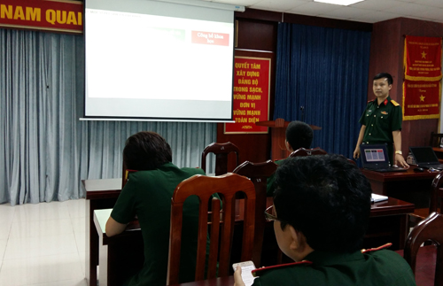 Báo cáo tại buổi sinh hoạt học thuật, Trung tá PGS. TS Trịnh Lê Hùng đã trình bày một số thông tin cơ bản về nhóm nghiên cứu chuyên sâu “Địa tin học”, kết quả đạt được trong một năm qua và những định hướng cụ thể trong thời gian tới. Được thành lập trên cơ sở nhóm nghiên cứu chuyên sâu “Ứng dụng thông tin địa không gian”, năm qua, nhóm nghiên cứu “Địa tin học” đã có những cố gắng, nỗ lực trong nghiên cứu và bước đầu đạt được một số kết quả khả quan. Cho đến nay, nhóm đã công bố được 12 bài báo khoa học trên các tạp chí thuộc danh mục ISI/Scopus, trong đó có 10 bài do thành viên của nhóm là tác giả chính. Hiện nay, các thành viên của nhóm đang chủ trì 01 đề tài NCKH cấp Quốc gia, 01 đề tài cấp Bộ Quốc phòng, nhiều đề tài cấp cơ sở cũng như tham gia nhiều đề tài NCKH các cấp khác. Nhóm có quan hệ học thuật rộng rãi với nhiều chuyên gia và nhóm nghiên cứu khác tại các trường Đại học, Viện nghiên cứu trong cả nước về lĩnh vực Trắc địa – Bản đồ, từ đó giúp nâng cao năng lực chuyên môn của từng thành viên cũng như cập nhật được các hướng nghiên cứu hiện đại hiện nay trên thế giới và Việt Nam. Mục tiêu dài hạn của nhóm là đẩy mạnh công bố quốc tế và từng bước tham gia vào các chương trình khoa học phục vụ mục đích đảm bảo quốc phòng – an ninh, phát triển đất nước.