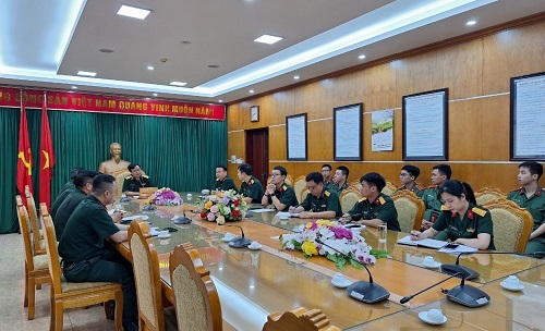 Tại buổi gặp, Thiếu tướng Hoàng Minh Ngọc – Cục trưởng Cục Bản đồ/BTTM đã giới thiệu với các học viên về lịch sử phát triển, cơ cấu tổ chức và nhiệm vụ được giao của Cục, trong đó nhấn mạnh Cục Bản đồ/BTTM là cơ quan tham mưu chiến lược đầu ngành toàn quân về địa hình quân sự; tổ chức thực hiện việc xây dựng, quản lý ngành Địa hình quân sự; bảo đảm địa hình cho nhiệm vụ tác chiến và các nhiệm vụ khác của Quân đội. Đây cũng là một lĩnh vực được xác định tiến thẳng lên hiện đại của quân đội ta trong giai đoạn đến năm 2030. Đồng chí Cục trưởng đề nghị các học viên chủ động xây dựng kế hoạch làm việc của từng cá nhân, thường xuyên gặp gỡ, trao đổi với cán bộ hướng dẫn thực tập, tận dụng tối đa thời gian thực tập để học hỏi, làm quen với các trang thiết bị, công nghệ địa không gian hiện đại cũng như dây chuyền sản xuất tư liệu địa hình. Bên cạnh đó, các học viên cũng cần chấp hành nghiêm các quy định của đơn vị nhằm đảm bảo quá trình thực tập tốt nghiệp diễn ra hiệu quả, an toàn và đúng kế hoạch đã được xây dựng. Cục Bản đồ sẽ tạo mọi điều kiện thuận lợi về thời gian, trang thiết bị, cơ sở vật chất để giúp học viên Lớp ĐHQS 55 có một khóa thực tập hiệu quả, ý nghĩa, giúp các em nắm bắt tốt hơn nhiệm vụ tại các cơ quan, đơn vị trong quân đội sau khi tốt nghiệp.