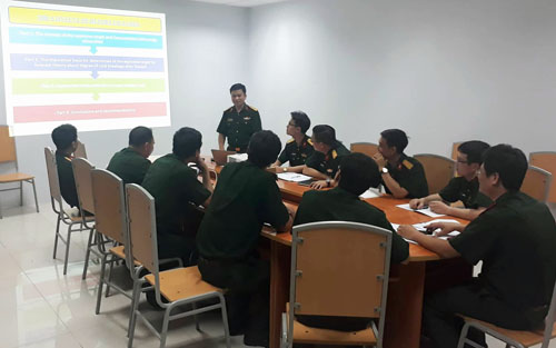 Ngày 16/5, Bộ môn Xây dựng Công trình quốc phòng/Viện Kỹ thuật Công trình đặc biệt đã tổ chức buổi sinh hoạt học thuật bằng tiếng Anh dưới sự chủ trì của TS Ngô Ngọc Thủy – Chủ nhiệm Bộ môn. Tới dự buổi sinh hoạt có Đại tá PGS.TS Nguyễn Trí Tá – Viện trưởng và các cán bộ, giáo viên trong Bộ môn.