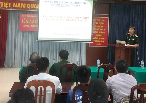 Tham dự buổi giao nhiệm vụ đồ án có Trung tá Nguyễn Văn Tú – Phó Chủ nhiệm, phụ trách Bộ môn XD Nhà & CTCN cùng các đồng chí giáo viên hướng dẫn của Viện Kỹ thuật công trình đặc biệt.