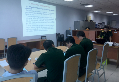 Sáng 28/6, Bộ môn Xe máy công binh/Khoa Động lực đã tổ chức buổi sinh hoạt học thuật nhằm kiểm tra đánh giá chất lượng nghiên cứu sinh (NCS) Tạ Văn Huy trước khi thi chuyên đề, PGS. TS Nguyễn Viết Tân chủ trì buổi sinh hoạt. Tham dự buổi sinh hoạt có các đồng chí giáo viên, học viên cao học, nghiên cứu sinh trong Bộ môn.