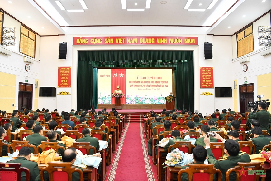 Chiều 20/12, tại Hà Nội, Bộ Quốc phòng tổ chức Lễ trao Quyết định khen thưởng các nhà giáo được công nhận đạt tiêu chuẩn chức danh giáo sư (GS), phó giáo sư (PGS) trong Quân đội năm 2023. Thượng tướng Nguyễn Tân Cương – Ủy viên Trung ương Đảng, Ủy viên Thường vụ Quân ủy Trung ương, Tổng Tham mưu trưởng Quân đội nhân dân (QĐND) Việt Nam, Thứ trưởng Bộ Quốc phòng chủ trì buổi lễ.