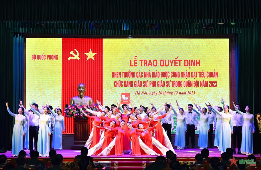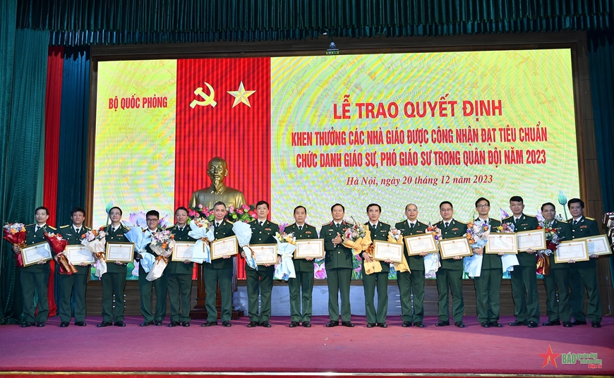 Riêng đội ngũ nhà giáo có trình độ sau đại học đạt 62,44%. Hiện các cơ sở giáo dục của Quân đội có 1 NGND, 23 NGƯT, 518 giảng viên dạy giỏi, giáo viên dạy giỏi cấp Bộ Quốc phòng; 17 GS, 342 PGS đang công tác. Năm 2023, trong Quân đội có 50 nhà giáo được Hội đồng Giáo sư Nhà nước công nhận đạt tiêu chuẩn chức danh GS, PGS; 14 nhà giáo đủ điều kiện đề nghị lên Hội đồng cấp Nhà nước xét, đề nghị tặng danh hiệu NGND, NGƯT.