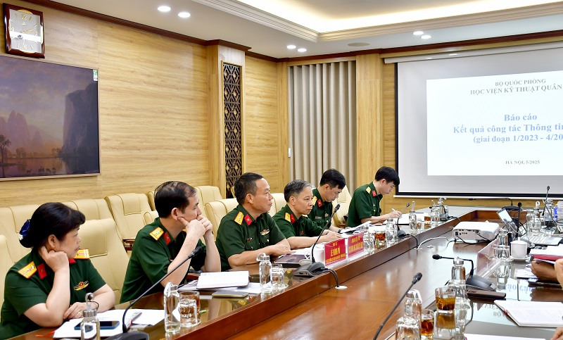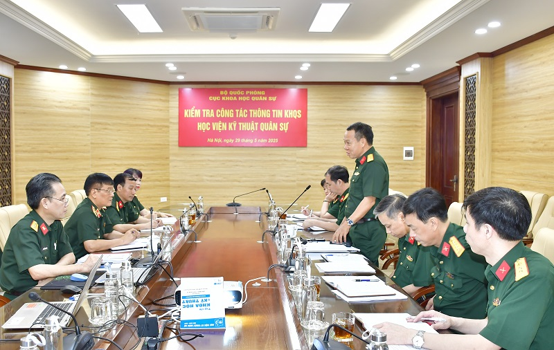 Thực hiện Kế hoạch công tác Thông tin KHQS năm 2025 (theo Quyết định số 202/QĐ-BQP ngày 16/01/2025 của Bộ Quốc phòng), ngày 29/5/2024, Đoàn kiểm tra của Bộ Quốc phòng (BQP) do Đại tá Lê Đình Vũ – Phó Cục trưởng Cục Khoa học quân sự làm Trưởng đoàn đã tiến hành kiểm tra Công tác Thông tin KHQS tại Học viện KTQS giai đoạn 2023-2025. Tiếp và làm việc với Đoàn, về phía Học viện có Thiếu tướng Mai Quang Huy – Phó Giám đốc Học viện; Ban Chỉ huy và cán bộ, nhân viên Phòng Thông tin KHQS.