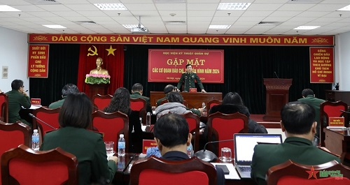 Chiều 12/01, tại Hà Nội, Học viện KTQS gặp mặt các cơ quan báo chí, truyền hình năm 2024, dưới sự chủ trì của Thiếu tướng Trần Văn Duy – Phó Chính ủy Học viện KTQS.