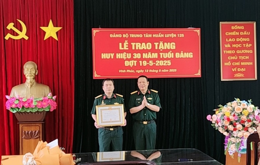 Chiều 12/5/2025, Đảng bộ Trung tâm Huấn luyện 125 đã long trọng tổ chức Lễ trao tặng Huy hiệu 30 năm tuổi đảng cho Thượng tá QNCN Nguyễn Hoàng Tuấn – Kỹ thuật viên Xưởng Cơ điện/Trung tâm Huấn luyện 125 Vĩnh Phúc. Tới dự có Đại tá Bùi Sơn Nam – Đảng ủy viên […]