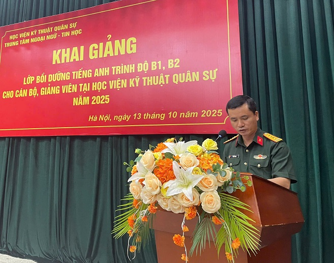 Chiều 13/10/2025, Học viện KTQS đã tổ chức khai giảng Lớp Bồi dưỡng tiếng Anh trình độ B1, B2 cho cán bộ, giảng viên trong Học viện. Tham dự buổi khai giảng có Đại tá Chu Anh Mỳ – Phó Giám đốc Học viện; Đại tá Trần Quang Huy – Phó Chủ nhiệm Chính […]