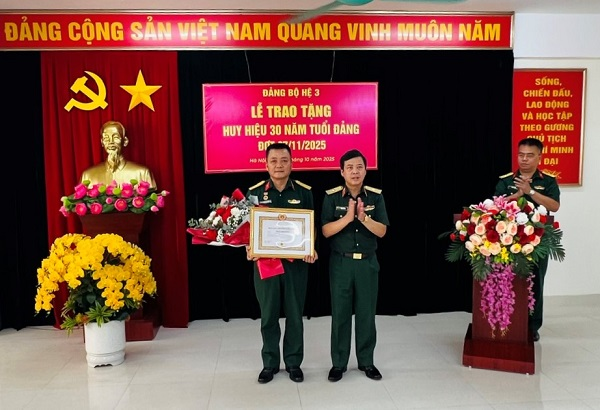 Sáng 17/10/2025, Đảng bộ Hệ 3 đã long trọng tổ chức Lễ trao tặng Huy hiệu 30 năm tuổi Đảng cho Thượng tá Trần Việt Hưng – Hệ trưởng Hệ 3. Đến dự buổi Lễ có Thiếu tướng Trần Văn Duy – Phó Chính ủy Học viện; đại diện Phòng Chính trị; các đồng chí […]