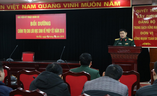 Thực hiện Quyết định số 4651/QĐ-HV ngày 29/12/2017 về việc cho lưu học sinh (LHS) nghỉ phép và Kế hoạch số 390/KH-HTQT ngày 02/02/2018 về việc tổ chức học chính trị cho LHS, vừa qua, Phòng HTQT & QLLHSQS đã phối hợp với Phòng Chính trị tổ chức lớp học chính trị cho 20 LHS […]