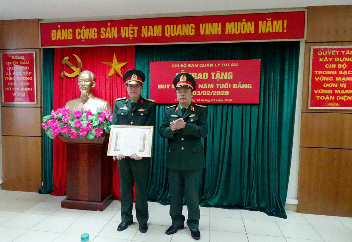 Ngày 14/01/2020, Chi bộ Ban Quản lý dự án (QLDA) đã long trọng tổ chức Lễ trao tặng Huy hiệu 30 năm tuổi Đảng cho Đại tá Nguyễn Ngọc Khôi – Phó Bí thư Chi bộ, Trưởng ban QLDA.