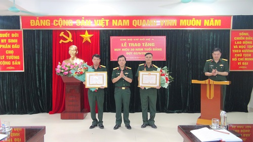 Tại buổi Lễ, Đại tá Nguyễn Quang Huy – Phó Bí thư Chi bộ đã công bố Quyết định trao tặng Huy hiệu 30 năm tuổi Đảng. Thay mặt Đảng ủy, Ban Giám đốc Học viện, Đại tá Trần Văn Duy đã trao và gắn Huy hiệu 30 năm tuổi Đảng cho đồng chí Bùi Khắc Lĩnh và Hoàng Đức Hùng; đồng thời ghi nhận sự đóng góp, cống hiến to lớn của 02 đồng chí đối với sự nghiệp cách mạng của Đảng và Quân đội. Đồng chí Phó Chính ủy Học viện biểu dương tinh thần phấn đấu không ngừng, dù ở bất kỳ vị trí công tác nào hai đảng viên cũng hoàn thành xuất sắc nhiệm vụ được giao.
