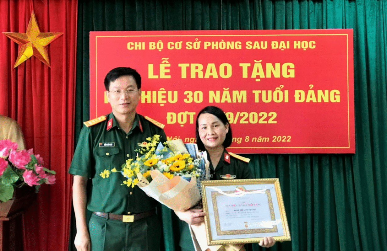Chi bộ cơ sở Phòng Sau đại học tổ chức Lễ trao tặng Huy hiệu 30 năm tuổi Đảng cho Thượng tá CN Đinh Thị Lan Thanh
