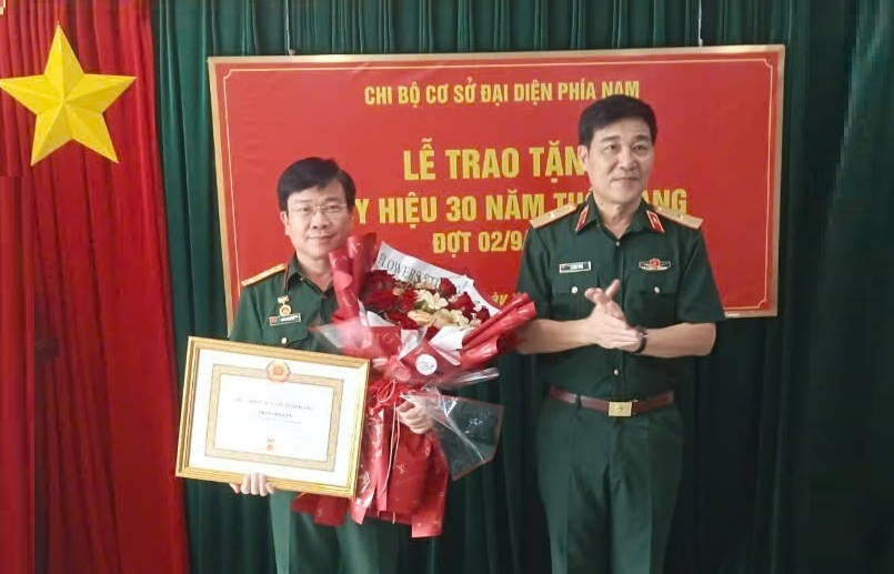 Trong không khí tưng bừng, phấn khởi của toàn dân tộc hướng tới kỷ niệm 79 năm Ngày Quốc khánh nước Cộng hòa xã chủ nghĩa Việt Nam (02/9/1945 – 02/9/2024) và 55 năm thực hiện Di chúc của Bác Hồ kính yêu (1969-2024), chiều 16/8, Chi bộ Đại diện phía Nam đã tổ chức Lễ trao tặng Huy hiệu 30 năm tuổi Đảng cho Đại tá Trần Minh Vỹ – Bí thư Chi bộ, Chỉ huy Trưởng Đại diện phía Nam.