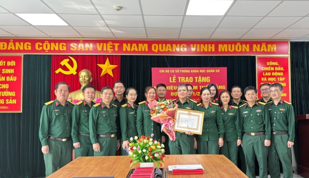 Thực hiện Quyết định số 3131-QĐ/QUTW ngày 09/10/2024 của Quân ủy Trung ương về việc trao Huy hiệu 30 năm tuổi Đảng, ngày 18/10/2024, Chi bộ Phòng Khoa học quân sự (KHQS) tổ chức Lễ trao tặng Huy hiệu 30 năm tuổi Đảng cho Thượng tá Nguyễn Công Hải – Trợ lý Ban Quản lý KHQS/Phòng KHQS. Đại tá Lê Hoàng Hải – Bí thư Chi bộ chủ trì buổi Lễ. Tham dự có các đồng chí trong cấp ủy, chỉ huy và toàn thể đảng viên trong Chi bộ.