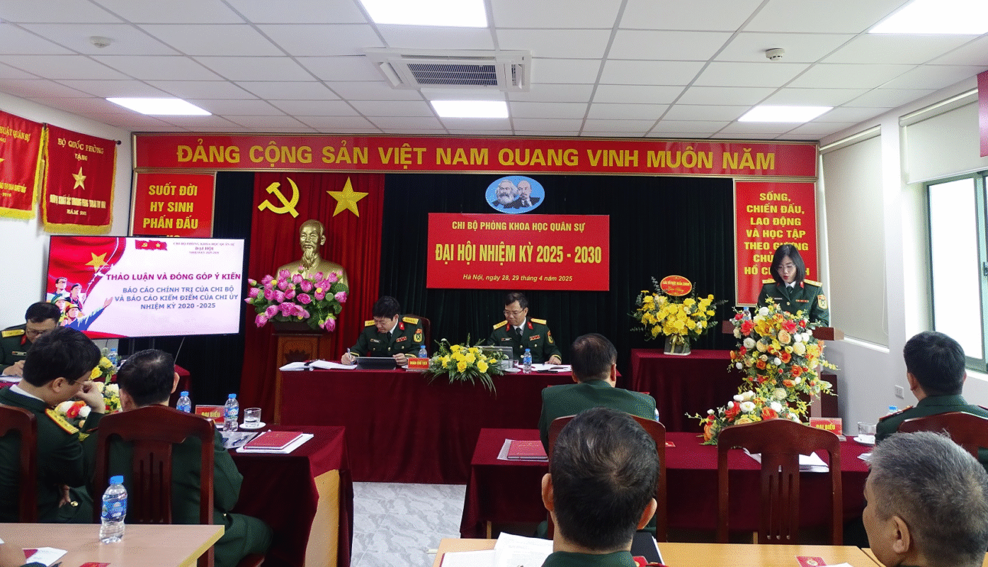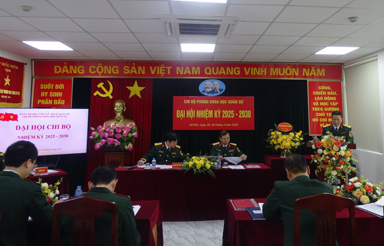 Trong 2 ngày 28 và 29/4/2025, Chi bộ Phòng KHQS đã long trọng tổ chức Đại hội Chi bộ nhiệm kỳ 2025-2030. Đại hội vinh dự được đón tiếp Thiếu tướng Mai Quang Huy – Đảng ủy viên, Phó Giám đốc Học viện đến dự và chỉ đạo Đại hội. Tham dự Đại hội có các đại biểu Phòng Đào tạo, Phòng Sau đại học, Phòng Thông tin KHQS; đại diện Tổ Phái viên của Đảng ủy Học viện và toàn thể đảng viên trong Chi bộ.