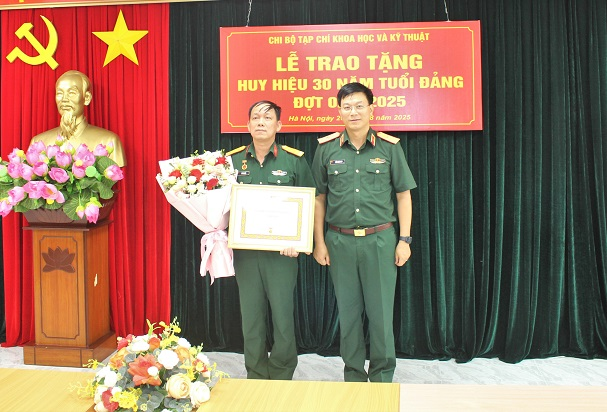 Chiều 26/8/2025, Chi bộ Tạp chí Khoa học và Kỹ thuật (KH&KT) đã long trọng tổ chức Lễ trao tặng Huy hiệu 30 năm tuổi Đảng cho Thượng tá Vũ Kim Sơn – Biên tập viên Tạp chí KH&KT. Tham dự buổi Lễ có Thiếu tướng Trần Xuân Nam – Ủy viên Thường vụ Đảng ủy Học viện, Phó Giám đốc Học viện cùng toàn thể cán bộ, đảng viên trong Chi bộ.