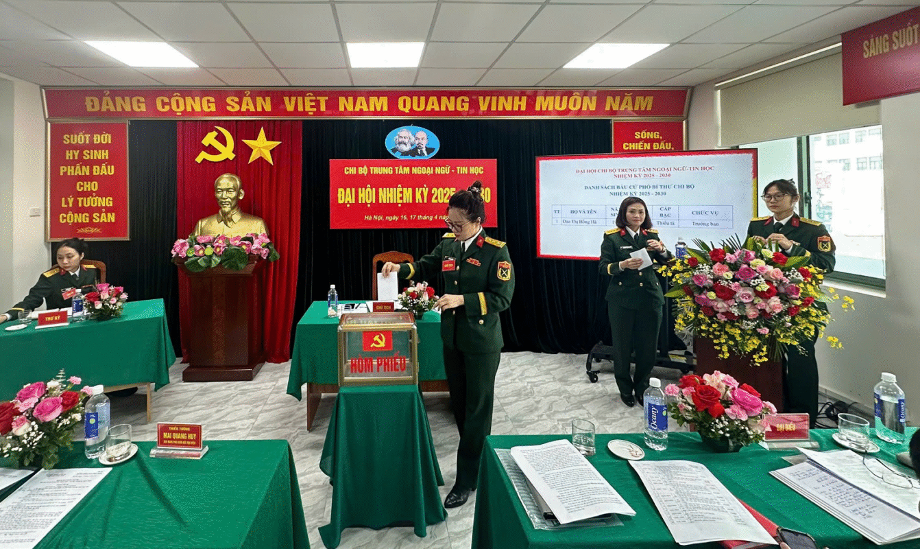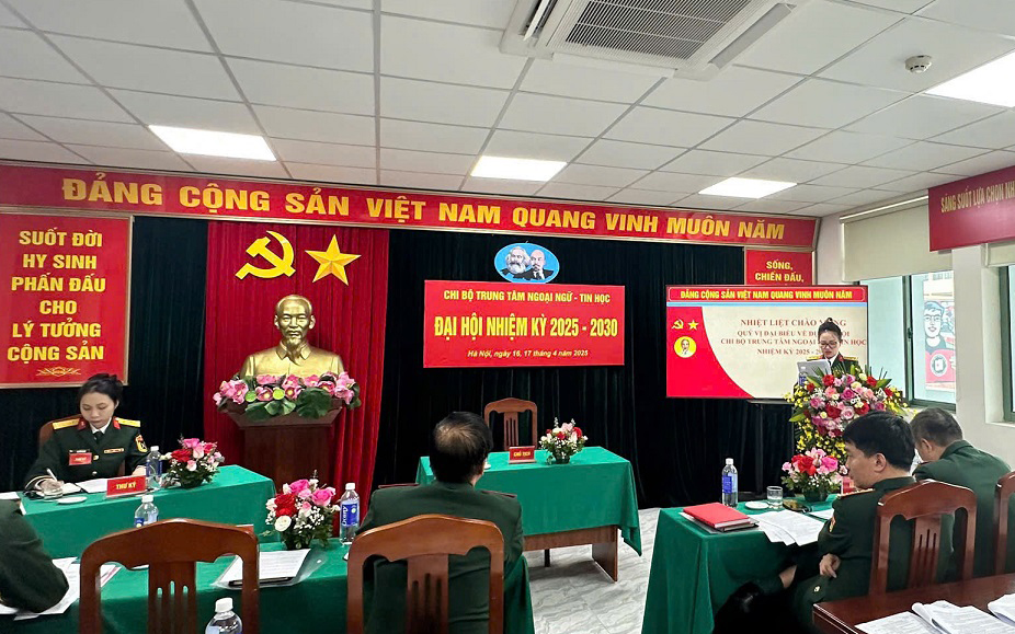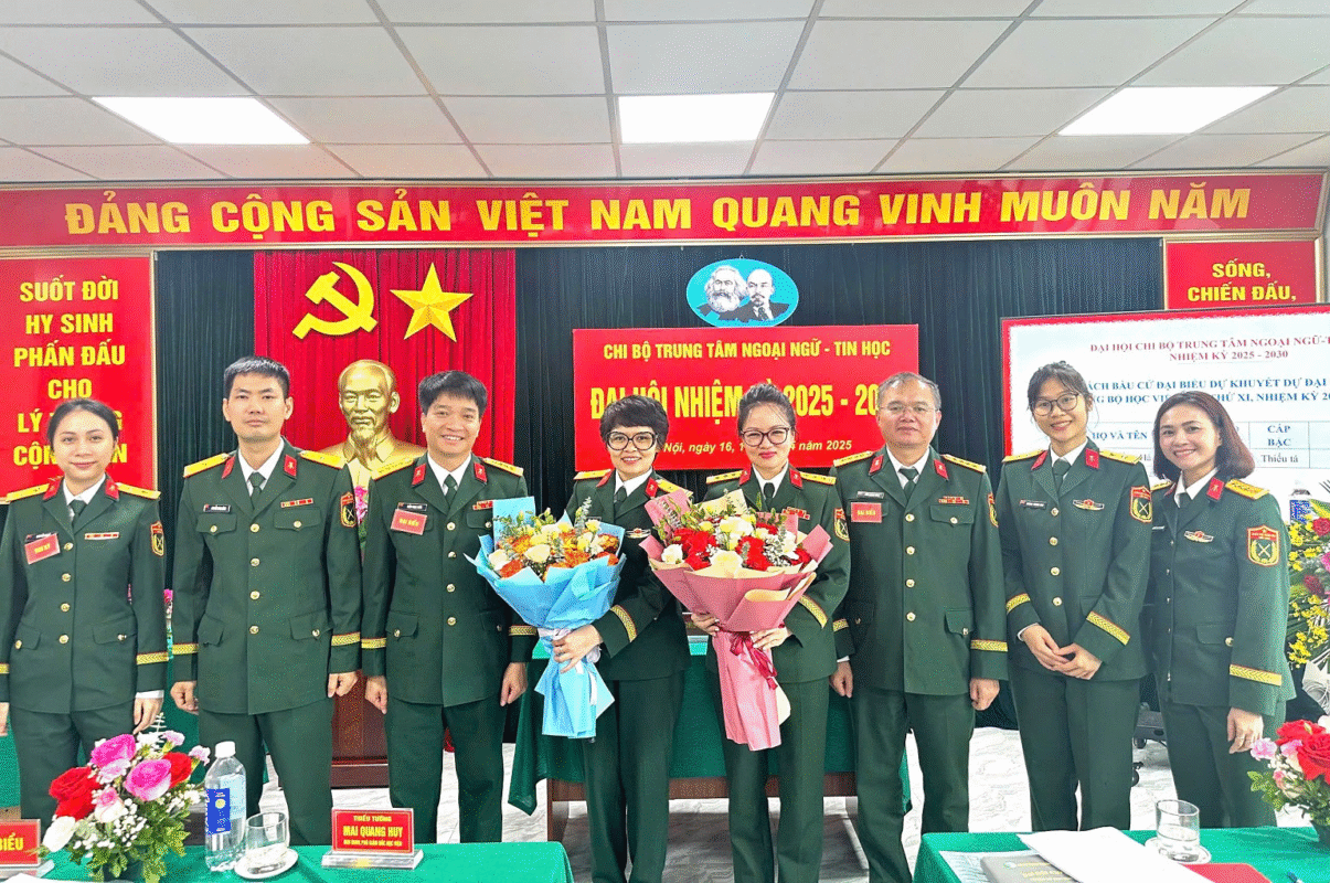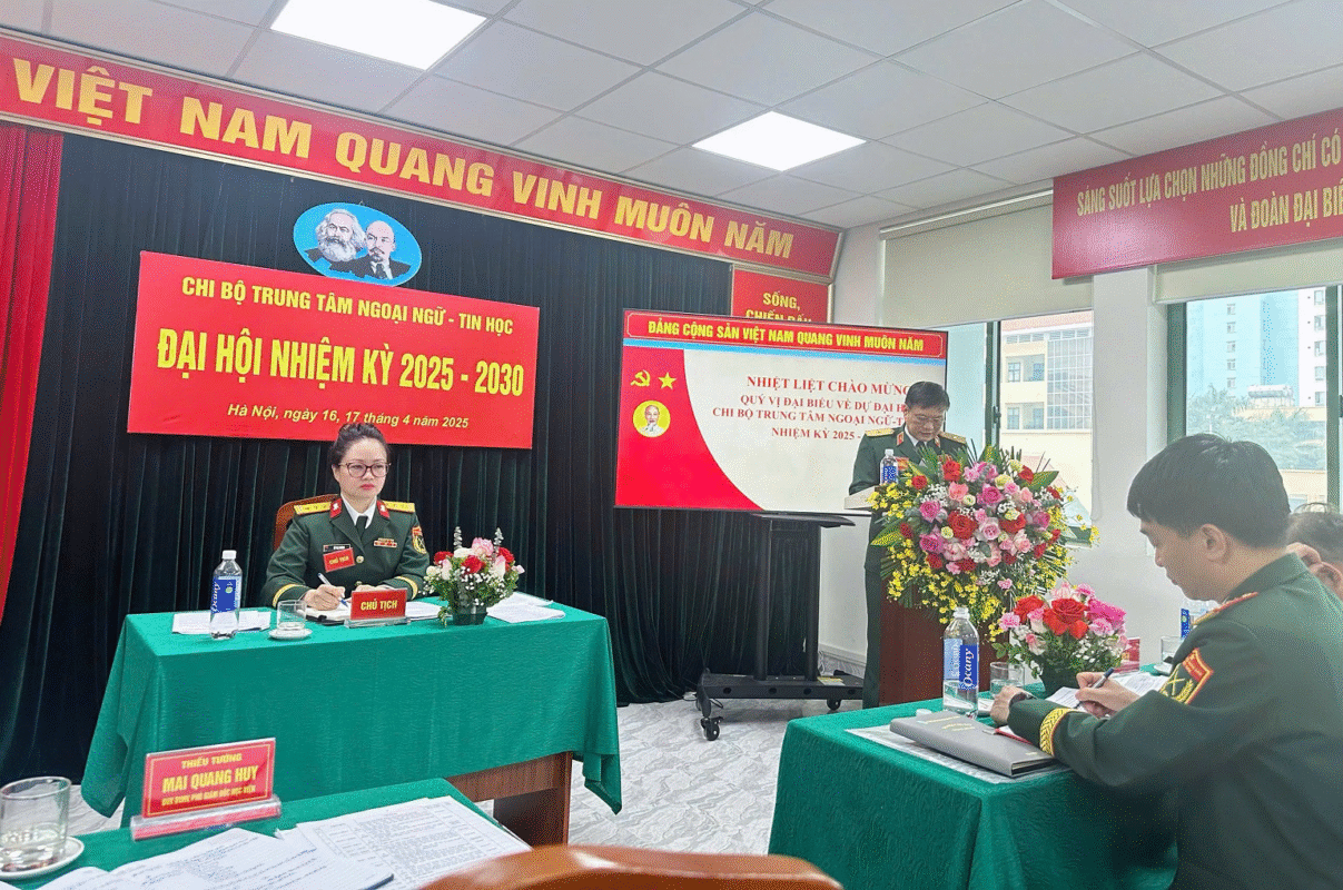 Sáng 17/4/2025, Chi bộ Trung tâm Ngoại ngữ – Tin học đã tổ chức Đại hội Chi bộ nhiệm kỳ 2025-2030. Đây là sự kiện chính trị quan trọng nhằm tổng kết, đánh giá kết quả lãnh đạo thực hiện nhiệm vụ nhiệm kỳ 2022-2025 và xác định phương hướng, mục tiêu nhiệm vụ trong nhiệm kỳ mới của Chi bộ. Thiếu tướng Mai Quang Huy – Ủy viên Thường vụ Đảng ủy, Phó Giám đốc Học viện đến dự và chỉ đạo. Tham dự Đại hội có đại biểu Phòng Chính trị, Phòng Đào tạo, Phòng Sau đại học cùng toàn thể đảng viên trong Chi bộ.