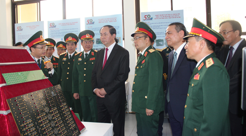 Sáng 28/10, Chủ tịch nước Trần Đại Quang và các đại biểu về dự Lễ kỷ niệm 50 năm Ngày truyền thống Học viện và đón nhận Huân chương Độc lập hạng Nhì, đã đến tham quan các sản phẩm nghiên cứu khoa học tiêu biểu, những thành tựu trong công tác đào tạo và xây dựng Học viện trong 50 năm qua.
