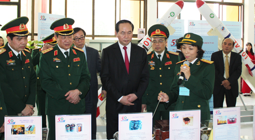 Tại buổi tham quan, Thiếu tướng GS. TSKH Nguyễn Công Định – Giám đốc Học viện, đã báo cáo khái quát những thành tựu trong công tác đào tạo, nghiên cứu khoa học của Học viện trong 50 năm qua với Chủ tịch nước. Sau khi nghe các báo cáo viên giới thiệu về những sản phẩm nghiên cứu khoa học của Học viện, đồng chí Chủ tịch nước đánh giá cao kết quả đào tạo và nghiên cứu khoa học của Học viện trong thời gian qua và yêu cầu Học viện tiếp tục phát huy truyền thống “Đoàn kết, chủ động, sáng tạo, khắc phục khó khăn, hoàn thành tốt mọi nhiệm vụ” và sức mạnh tổng hợp để tiếp tục đổi mới nâng cao chất lượng đào tạo, nghiên cứu khoa học, tạo ra nhiều sản phẩm chất lượng đáp ứng yêu cầu, nhiệm vụ của Quân đội trong tình hình mới.