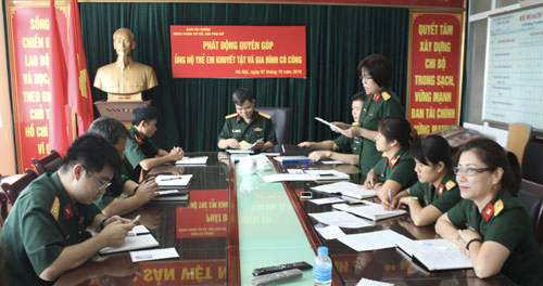 Hướng tới chào mừng kỷ niệm 50 năm ngày Truyền thống Học viện KTQS (28/10/1966 – 28/10/2016) và hưởng ứng đợt thi đua cao điểm “50 ngày đoàn kết, lập công, quyết thắng”, được sự chỉ đạo của Chi ủy Ban Tài chính, sáng 07/10, Ban chấp hành Công đoàn và Hội Phụ nữ cơ sở đã phát động quyên góp ủng hộ trẻ em khuyết tật và gia đình có công với cách mạng tới toàn thể cán bộ, nhân viên. Tổng số tiền quyên góp được sẽ mua quà, đồ dùng cá nhân, nhu yếu phẩm, quần áo tặng cho các cháu bị khuyết tật, khiếm thính, câm điếc đang được nuôi dưỡng tại Trung tâm Trẻ em khuyết tật Hà Nội thuộc xã Trúc Sơn, huyện Chương Mỹ, thành phố Hà Nội và mua quà tặng các gia đình chính sách, người có công với cách mạng tại huyện Hàm Yên, tỉnh Tuyên Quang.
