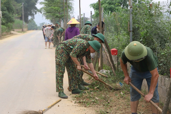 – Cùng với các cơ quan, đoàn thể và nhân dân trên địa bàn 2 xã, tổ chức tổng dọn vệ sinh khu vực trụ sở UBND xã, nhà văn hóa và các trục đường chính của các thôn.