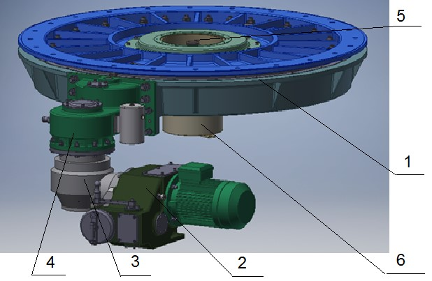 1- Cụm mâm quay; 2- Cụm hộp số tay quay; 3- Cụm hộp số hành tinh;
