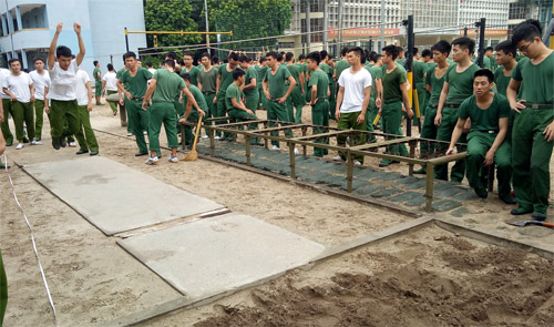 Bên cạnh đó, rèn luyện thể lực cũng được Chỉ huy Đại đội 350 rất chú trọng và luôn coi đó là hoạt động thường xuyên, hằng ngày của đơn vị mình. Các nội dung: Co tay xà đơn, chạy 100m, 3000m, bơi… được đơn vị tổ chức thực hiện chặt chẽ và chu đáo. Sinh thời Bác Hồ từng nói “Cán bộ nào, phong trào ấy”, vì vậy phương pháp luyện tập của cán bộ Đại đội là cùng tập luyện, vui chơi với học viên để vừa tạo sự đoàn kết cán – binh, vừa tạo sự hào hứng cho bộ đội.