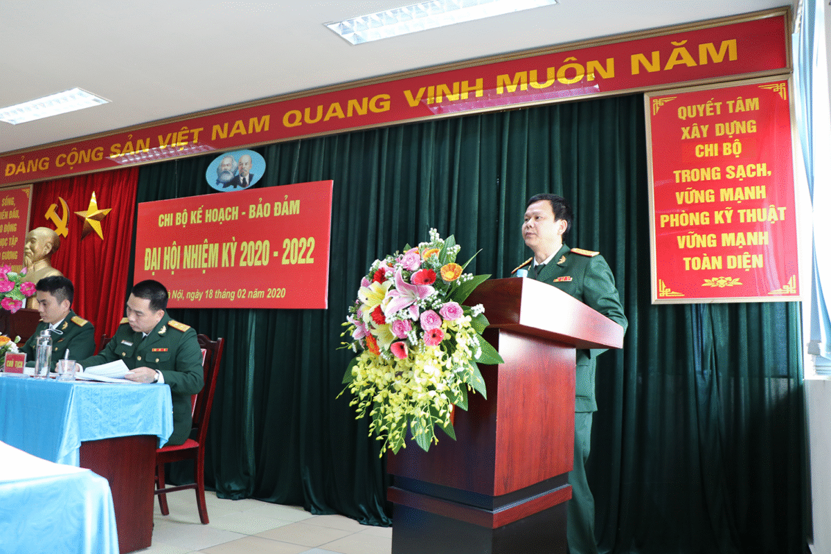 Tại Đại hội, thay mặt cấp ủy nhiệm kỳ 2018 – 2020, Trung tá Lê Trọng Nghĩa – Bí thư chi bộ đã trình bày Báo cáo Chính trị, Báo cáo Kiểm điểm của Chi ủy Chi bộ Kế hoạch – Bảo đảm nhiệm kỳ 2018 – 2020. Báo cáo đánh giá đầy đủ trên tất cả các mặt công tác mà chi bộ đã lãnh đạo trong nhiệm kỳ vừa qua, đồng thời chỉ ra những mặt còn hạn chế, phân tích nguyên nhân và những bài học kinh nghiệm trong thực hiện Nghị quyết Đại hội Chi bộ nhiệm kỳ 2018 – 2020, từ đó đưa ra phương hướng, mục tiêu và những giải pháp lãnh đạo cụ thể của chi bộ trong nhiệm kỳ 2020 – 2022. Các ý kiến tham luận tại Đại hội đều bày tỏ nhất trí cao với Báo cáo Chính trị, đồng thời nhấn mạnh, làm rõ thêm một số điểm mạnh, điểm yếu trong nhiệm kỳ qua làm cơ sở rút ra bài học kinh nghiệm cho nhiệm kỳ tới. Các ý kiến tham luận cũng đã bổ sung thêm một số nội dung về phương hướng, mục tiêu và biện pháp cụ thể trên những mặt công tác trọng tâm làm cơ sở để chi bộ lãnh đạo, chỉ đạo thực hiện nhiệm vụ và tiếp tục hoàn thành xuất sắc mọi nhiệm vụ được giao.