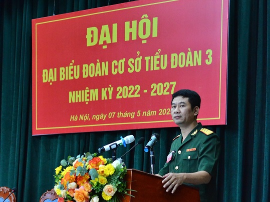 Phát biểu chỉ đạo Đại hội, Thượng tá Doãn Trung Cương – Bí thư Đảng ủy, Chính trị viên Tiểu đoàn đã ghi nhận, biểu dương và đánh giá cao những kết quả, thành tích mà ĐCS Tiểu đoàn đã đạt được trong nhiệm kỳ vừa qua. Đồng thời, chỉ đạo BCH ĐCS cần tập trung tổ chức thực hiện tốt CTĐ&PTTN trong nhiệm kỳ 2022 – 2027 đạt kết quả như nhiệm vụ, mục tiêu mà Đại hội đã đề ra. Đồng chí yêu cầu cán bộ, đoàn viên thanh niên cần đoàn kết, khắc phục khó khăn, phát huy hơn nữa vai trò xung kích, sáng tạo của tuổi trẻ, tích cực học tập, rèn luyện hoàn thành tốt mọi nhiệm vụ được giao, góp phần xây dựng Đảng bộ TSVM, Tiểu đoàn VMTD, “mẫu mực, tiêu biểu”.