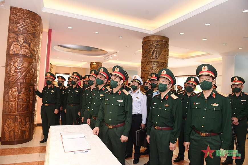 Đại tướng Phan Văn Giang và Đoàn công tác thăm Nhà truyền thống Học viện KTQS  (Ảnh: TRỌNG HẢI)
