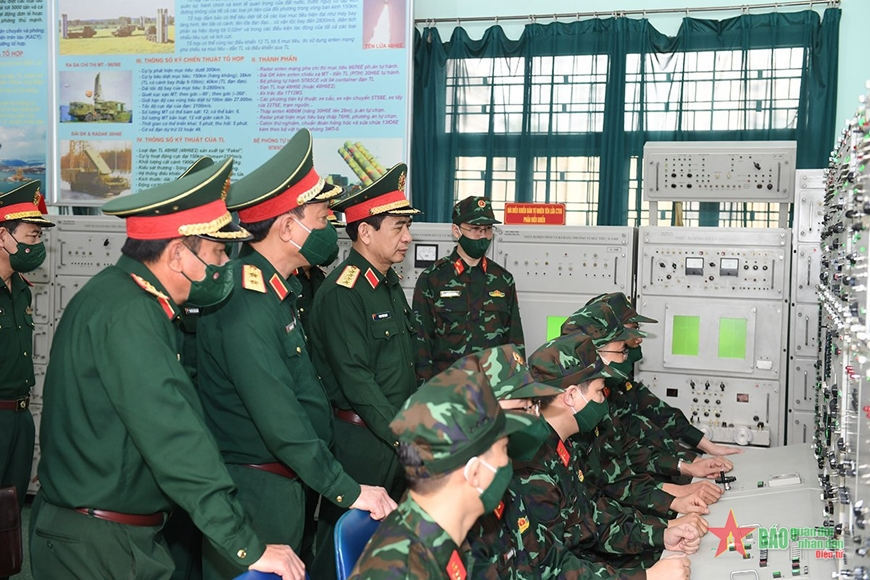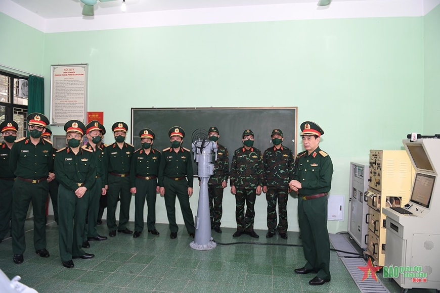 Kiểm tra hoạt động của mô phỏng bán tự nhiên đài điều khiển tên lửa S300-PMU1; hệ thống dẫn đường quán tính cho tàu hải quân sử dụng công nghệ cảm biến sợi quang; tham quan kíp chiến đấu của Khoa Kỹ thuật điều khiển, huấn luyện kiểm tra vũ khí trang bị buổi sáng trên tổ hợp pháo AK230, đồng chí Bộ trưởng bày tỏ hài lòng và chỉ ra một số lưu ý cần khắc phục để bảo đảm sát thực tế chiến đấu.