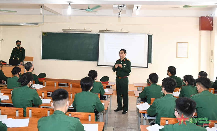Đại tướng Phan Văn Giang dành nhiều thời gian đến các lớp kiểm tra công tác dạy và học của giảng viên, học viên (Ảnh: TRỌNG HẢI)