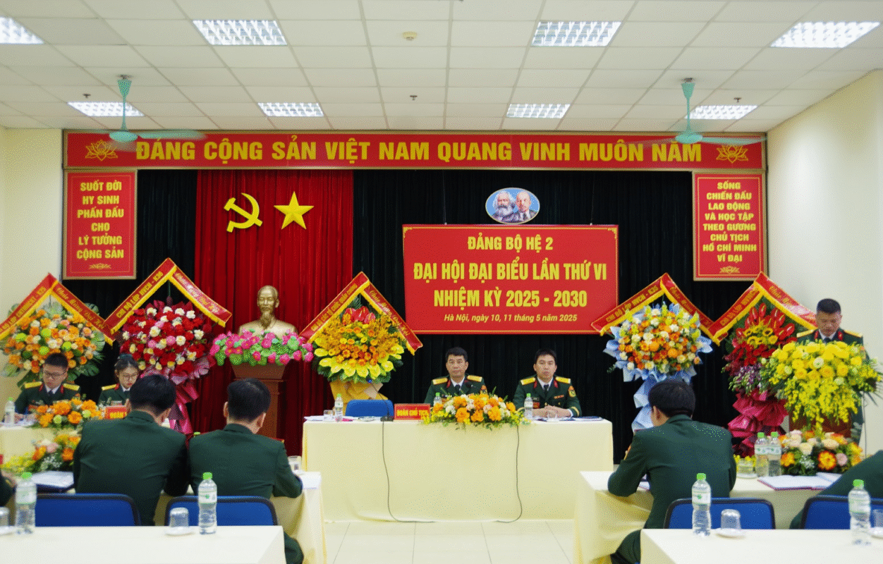 Trong không khí thi đua sôi nổi của toàn Đảng, toàn dân và toàn quân lập thành tích cao nhất chào mừng kỷ niệm 50 năm Ngày Giải phóng hoàn toàn miền Nam, thống nhất đất nước, 135 năm Ngày sinh chủ tịch Hồ Chí Minh vĩ đại, ngày 10 và 11/5, tại Hội trường 303, nhà C1, khu Phương Canh, Đảng bộ Hệ 2 đã long trọng tổ chức Đại hội đại biểu Đảng bộ nhiệm kỳ 2025-2030.