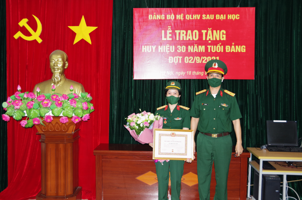 Ngày 18/8/2021, Đảng bộ Hệ Quản lý học viên Sau đại học đã long trọng tổ chức Lễ trao tặng Huy hiệu 30 năm tuổi Đảng cho Trung tá CN Lê Thị Tuyết Mai – Phó Bí thư Chi bộ Hậu cần, Tổ trưởng Tổ Quân y, Hệ Quản lý học viên Sau đại học.