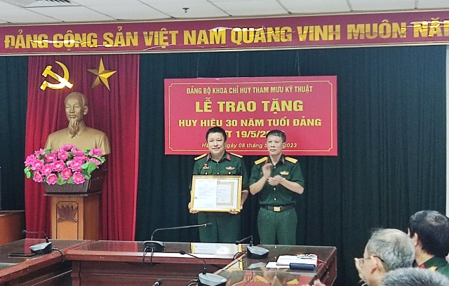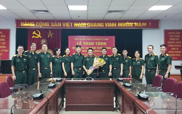 Ngày 08/5/2023, Đảng bộ Khoa Chỉ huy Tham mưu Kỹ thuật (CHTMKT) đã tổ chức Lễ trao tặng Huy hiệu 30 năm tuổi Đảng cho Thượng tá Vũ Đình Quyết – Đảng viên Chi bộ Bộ môn Bảo đảm kỹ thuật binh chủng. Tới dự buổi Lễ có các đồng chí trong Đảng ủy Khoa CHTMKT cùng toàn thể đảng viên trong Đảng bộ.