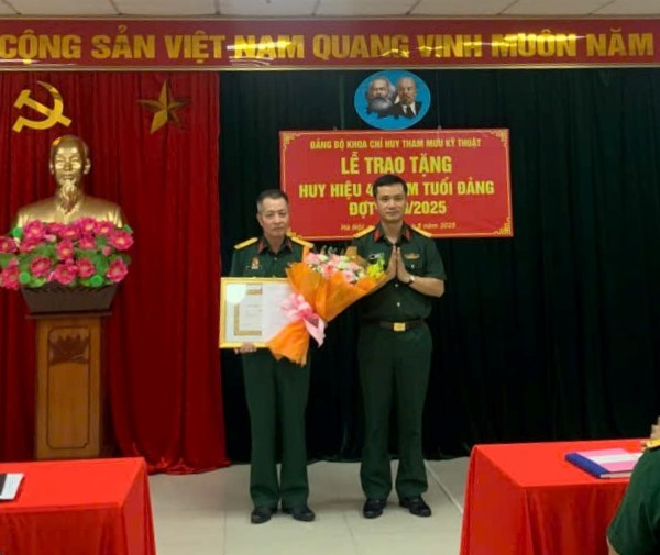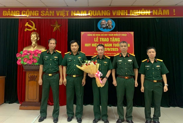 Sáng 22/8/2025, Đảng bộ Khoa Chỉ huy Tham mưu kỹ thuật (CHTMKT) đã long trọng tổ chức Lễ trao tặng Huy hiệu 40 năm tuổi Đảng cho Đại tá Phí Văn Tuấn – Giảng viên Bộ môn Bảo đảm kỹ thuật quân chủng/Khoa CHTMKT. Tới dự buổi Lễ có Đại tá Chu Anh Mỳ – Đảng ủy viên, Phó Giám đốc Học viện; các đồng chí trong Đảng ủy, Ban Chỉ huy Khoa cùng toàn thể đảng viên trong Đảng bộ.