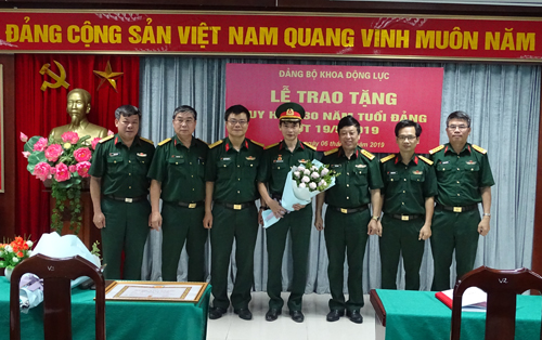 Thực hiện Quyết định Số 371-QĐ/QUTW ngày 18/4/2019 của Quân ủy Trung ương về việc trao Huy hiệu 30 năm tuổi Đảng, ngày 06/5/2019, Đảng bộ Khoa Động lực đã long trọng tổ chức Lễ Trao tặng Huy hiệu 30 năm tuổi Đảng cho Thượng tá Nguyễn Quang Thanh – Giáo viên Bộ môn Động cơ/Khoa Động lực. Tham dự buổi Lễ có các đồng chí trong ban lãnh đạo cấp ủy Đảng Khoa Động lực và toàn thể đảng viên trong Đảng Bộ.