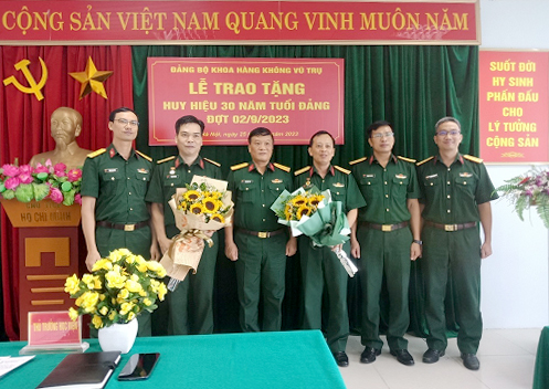 Tại buổi Lễ, Thượng tá Phạm Đình Tùng – Phó Bí thư Đảng ủy Khoa Hàng không vũ trụ đã công bố Quyết định tặng Huy hiệu Đảng và ghi nhận những cống hiến, đóng góp to lớn của 02 đồng chí trong suốt 30 năm qua đối với sự nghiệp cách mạng của Đảng, Quân đội và sự phát triển của Khoa. Các đồng chí luôn giữ vững niềm tin vào Đảng, vào chủ nghĩa xã hội và con đường đổi mới của đất nước; luôn là những tấm gương sáng về phẩm chất đạo đức, lối sống, tinh thần trách nhiệm, năng lực làm việc và sự gắn bó với Đảng, quần chúng và tập thể nơi mình công tác.