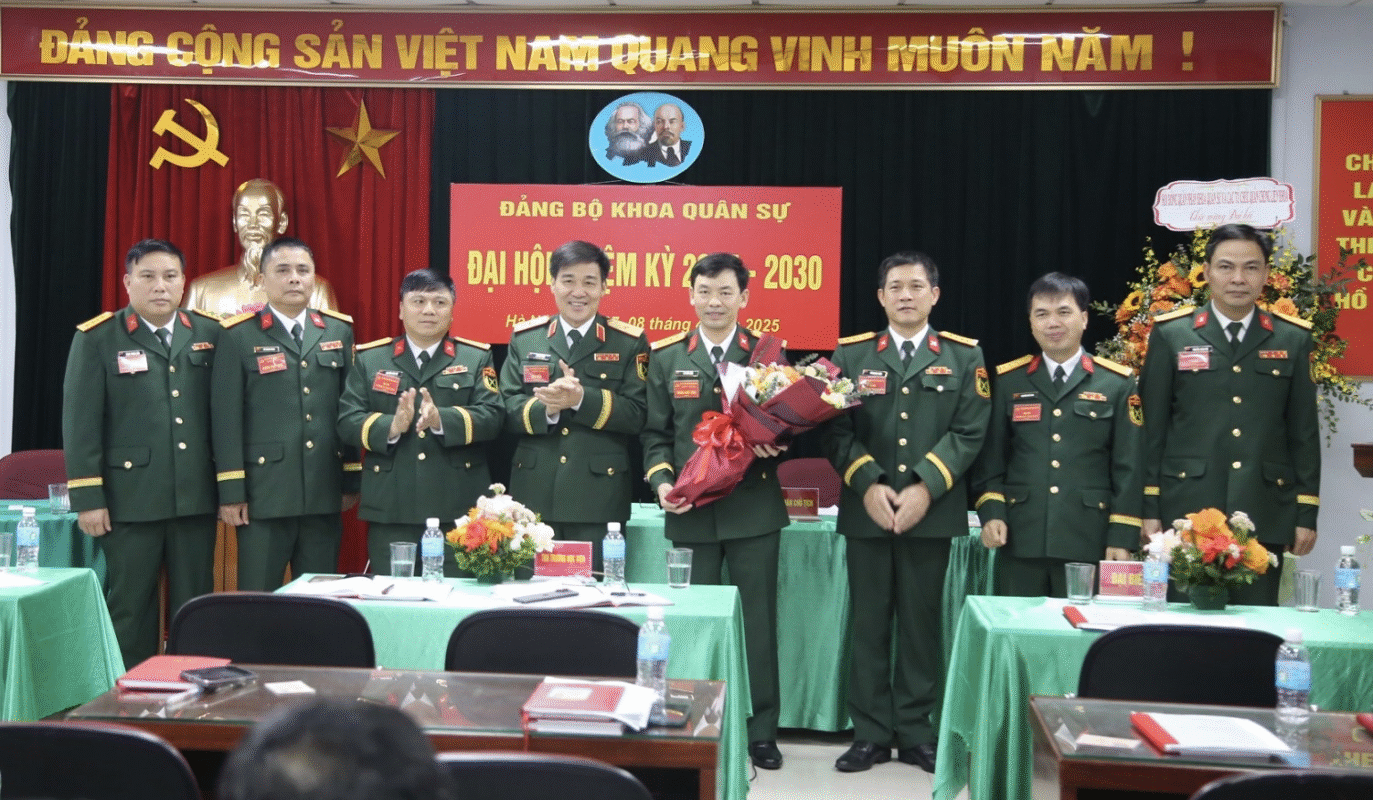 Thực hiện Chỉ thị số 1752-CT/ĐU ngày 20/8/2024 của Thường vụ Đảng ủy Học viện và Hướng dẫn Số 646/HD-CT ngày 28/10/2024 của Phòng Chính trị về tổ chức đại hội Đảng các cấp trong Đảng bộ Học viện, tiến tới Đại hội Đại biểu toàn quốc lần thứ XIV của Đảng, chiều 07 và ngày 08/4/2025, Đảng bộ Khoa Quân sự đã tổ chức Đại hội nhiệm kỳ 2025-2030. Thiếu tướng Lê Anh Tuấn – Đảng ủy viên, Phó Giám đốc Học viện đến dự và chỉ đạo Đại hội.