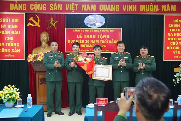 Chiều 13/01/2026, Đảng bộ Khoa Quân sự tổ chức Lễ trao tặng Huy hiệu 30 năm tuổi Đảng cho Đại tá Nguyễn Thế Long – Đảng ủy viên, Phó Chủ nhiệm Khoa Quân sự. Tham dự buổi Lễ có Thiếu tướng Lê Anh Tuấn – Đảng ủy viên, Phó Giám đốc Học viện KTQS; các đồng chí trong Đảng ủy, Ban Chủ nhiệm Khoa cùng toàn thể đảng viên Đảng bộ Khoa Quân sự.